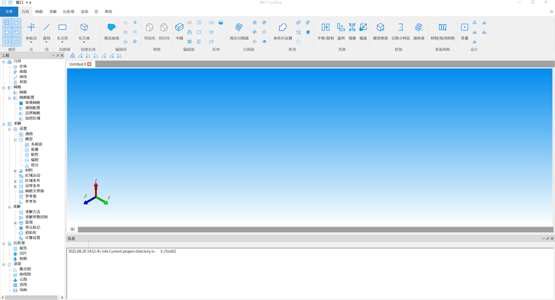 完成新建工程操作后,进入TauFlow软件主界面,如下图3所示