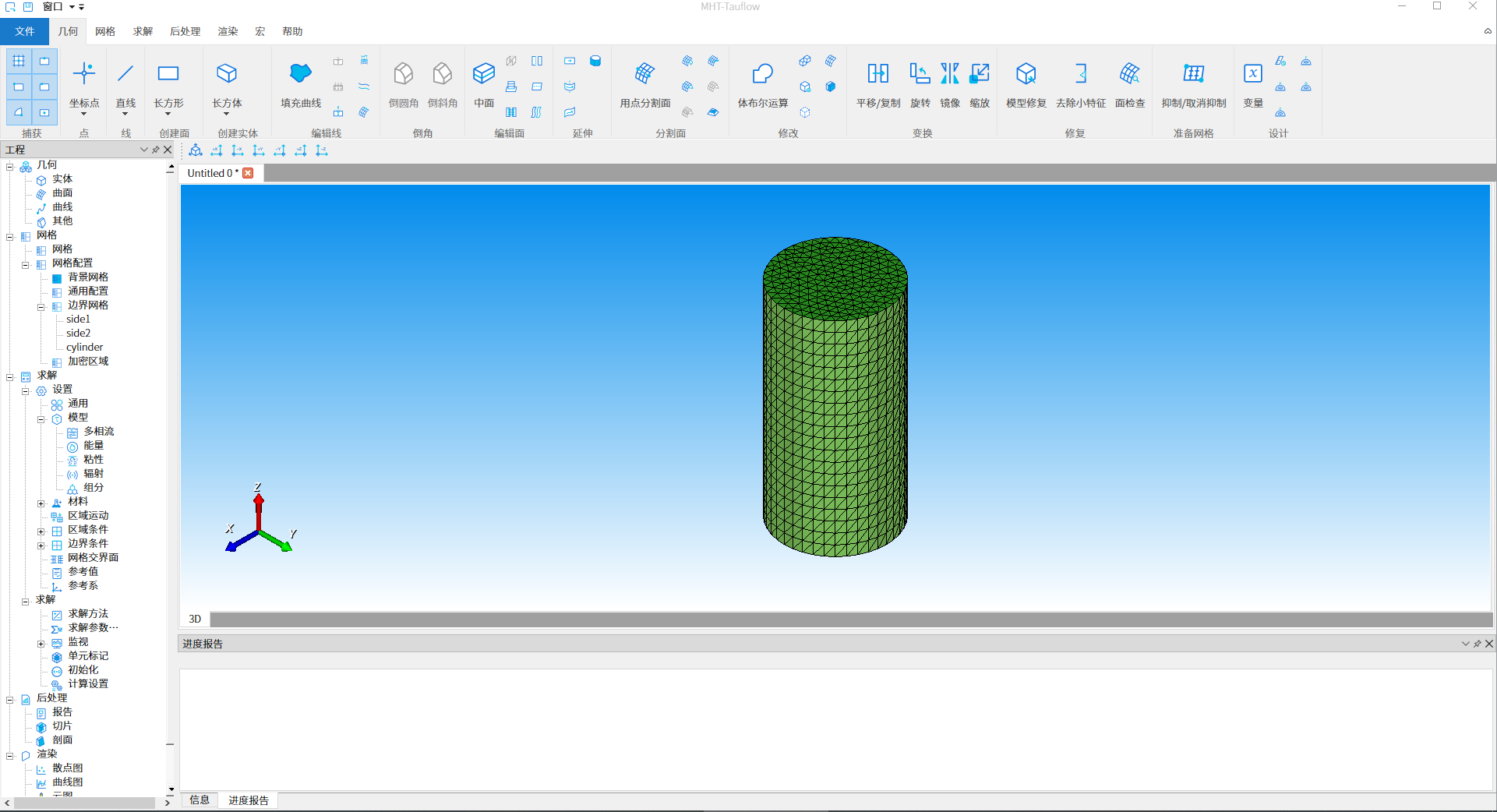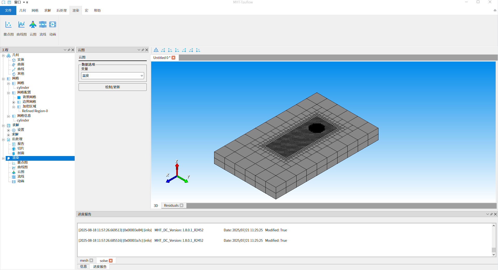 当前 MHT.TauFlow 软件 alpha 版本已完成开发,其核心功能体系包含几何建模、自动网格生成、多物理场求解计算、计算结果后处理及计算结果可视化五大模块。