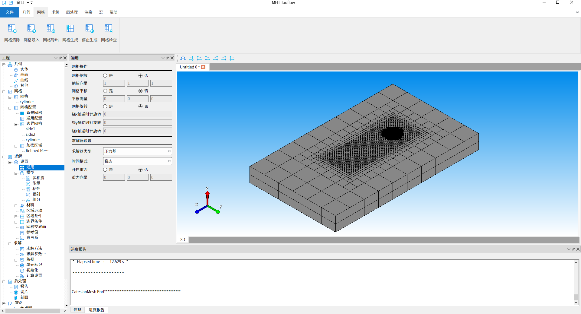 双击工程树结构【求解-设置-通用】节点,网格缩放、网格平移、网格旋转单选按钮都默认选『否』